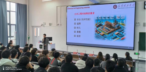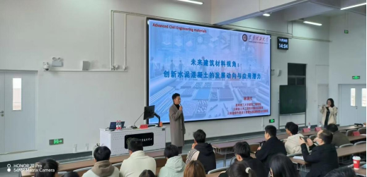 副院长韩利红老师首先介绍了会议主题、主讲嘉宾及参会人员,然后由林润生博士进行交流分享。讲座中,林润生博士从他的主要研究领域入手,通过项目案例的介绍深入浅出地给同学们讲述了建筑材料在建设过程中的重要性,并带领同学们认识人类利用材料的各种方式。其次,林博士介绍了碳化养护混凝土的原理和方法,并指出了绿色低碳水泥生产技术是当代水泥工业发展的主要方向;最后,林博士再次强调了材料在建筑工程中举足轻重的地位以及具体的一些施工方法,指出材料与建筑工程其他研究领域之间相互促进和相互依存的关系。