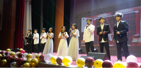 师生欢聚一堂,在舞台上携手唱响奋进的音符,用激昂的青春活力点燃新的征程,师生们在欢乐的气氛中度过了一个喜气洋洋的夜晚。