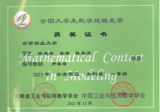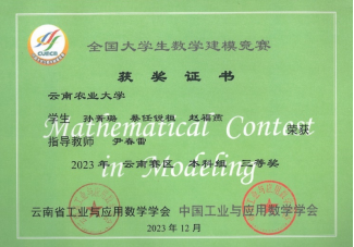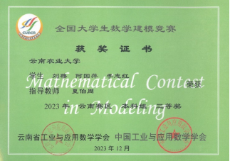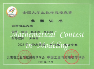 2023年12月30日,中国工业与应用数学学会主办的2023年高教社杯全国大学生数学建模竞赛云南赛区颁发了比赛获奖证书,七彩直播