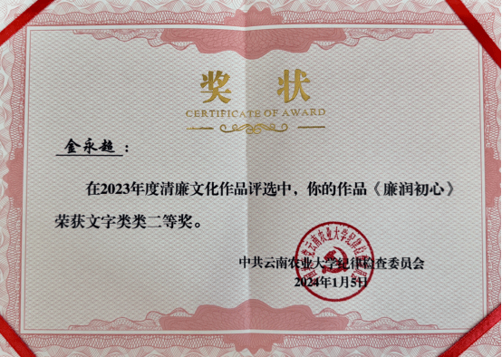 本站消息 近日,校纪委发布了《中共七彩直播 纪律检查委员会关于公布2023年度清廉文化作品征集活动获奖作品的通知》,七彩直播 党委高度重视此次作品征集活动,积极组织师生参赛,共征集各类作品20项,七彩直播 荣获优秀组织奖,教职工党支部金永超的作品《廉润初心》荣获文字类二等奖。