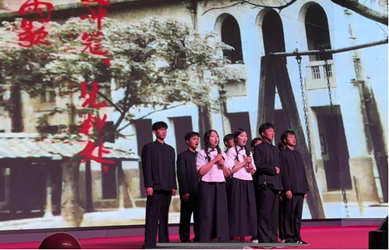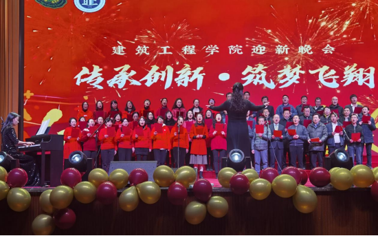 老师们身着整齐服装,齐声合唱院歌《筑梦飞翔》之时,那激昂奋进的旋律、饱含深情的歌声,将晚会气氛推向了高潮,充分展现了全院师生携手并肩、砥砺奋进、共创未来的坚定决心与美好信念。