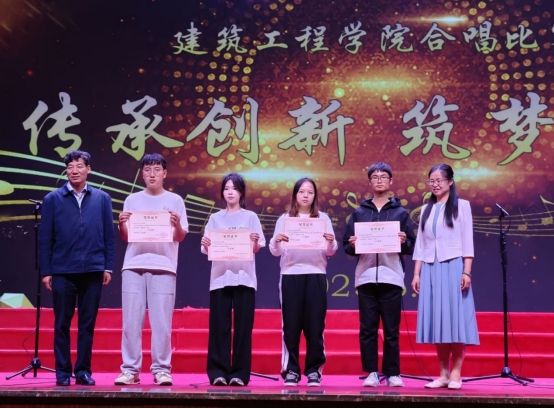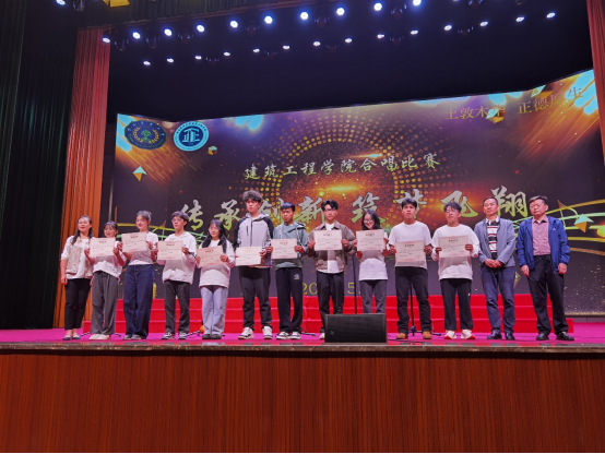 院歌《筑梦飞翔》,歌声中充满了作为建院人的自豪与对未来的憧憬之情。熟悉的旋律回荡在会堂中,台上台下形成强烈共鸣,不少师生随声轻和,现场气氛热烈非凡。经过激烈的角逐,评委们从演唱技巧、团队协作、情感表达、精神风貌等多方面进行考量,最终评选出一等奖3名,二等奖5名,三等奖10名。比赛结束后,杨欢老师进行了精彩的点评,她对同学们的表现给予了肯定,同时也提出了建设性意见。随后,在场领导和评委老师们为获奖队伍进行了颁奖。