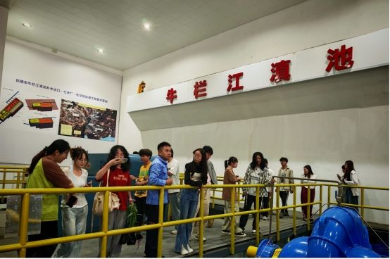 午后,师生转场昆明瀑布公园泵房。这里作为牛栏江—滇池补水工程的“动力心脏”,大型水泵机组稳定运转。