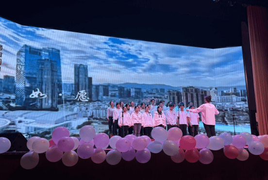晚会最后,全体教职工合唱院歌《筑梦飞翔》和《我和我的祖国》,将现场气氛推向高潮。舞台上下,国旗与荧光棒汇成一片红色海洋,实现了“个体情感”向“家国情怀”的升华。