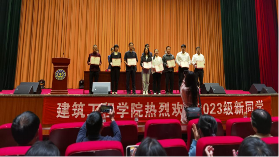 2023级工程管理专业李杭洧代表全体新生致辞,表示一定会珍惜青春年华、珍惜大学美好时光,勤学苦读,刻苦钻研,学知识长本领增才华,成就更优秀的自己。