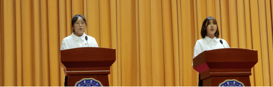2019级建筑学熊子含代表在校生致辞,她总结了自己过往的大学时光,从自己的经验出发与新生共勉,勉励新同学践行“土敦木华,正德厚生”的院训,做“方向正,基础正,结构正”的建院人,无愧于青春,无悔于时代。