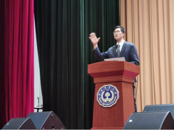 他还对新同学如何开启大学学习新征程,迈开人生新步伐,提出“同学们怎么办”,并列出了三个任务清单。清单1:做一个身心健康、有担当、有计划、有目标的人。清单2:尽快通过英语四、六级,扫清学习障碍;积极准备考研,争取学历提升;提前规划职业生涯,先就业后择业,铺平就业道路。清单3:每天早起30分钟,每月思考自己不足,每年总结自己成绩。