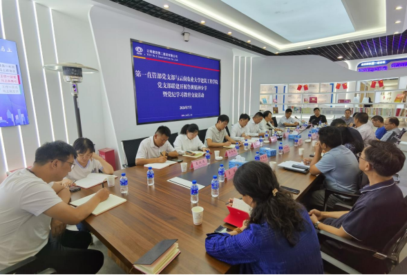为深入学习贯彻习近平新时代中国特色社会主义思想和党的二十大精神,推动党纪学习教育走深走实,深化支部共建,助力院企合作。2024年7月3日,七彩直播 教工党支部和云南建投第二建设有限公司(以下简称“公司”)第一直管部党支部开展题为“守一份匠心,照一方净土”党建联建主题党日活动,活动在公司产业化分公司会议室进行,活动由公司第一直管部党支部姚国旺书记主持,双方共30余名党员代表参加活动。