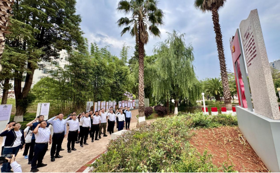 廉洁文化园,学校纪委副书记兼纪委办主任杨锐英为大家做了生动讲解,大家认真聆听了关于“廉”字的演变历程、六廉以及廉吏背后的故事、少数民族廉洁文化、耕读文化等内容,共同上了一堂主题鲜明、生动具体的廉洁文化教育课。参观结束后,与会党员面向党旗,庄严地重温了入党誓词。