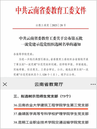 2023年10月入选云南省第五批高校“一流党建”示范党组织。
