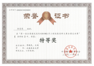 班级四六级过级率新高。全班研究生报考率35%,一人响应国家号召积极参军入伍。在技能竞赛方面,有8名同学获得住房城乡建设领域BIM应用中级证书,32名同学获得广联达专业技能证书,4名同学参与的项目获大学生创新创业大赛国家级立项,省级奖项证书8项,校级奖项证书20余项,发表论文2篇。