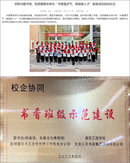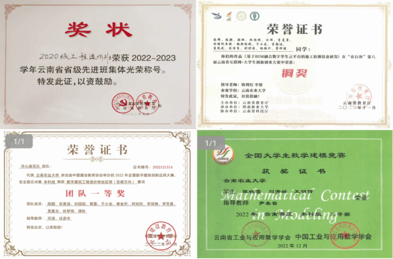全班58人,33名男生、25名女生,共青团员44人,申请入党32人,入党积极分子16人,预备党员2人。荣获2023年度学校“十佳优良学风班集体”。英语四六级通过率36.21%。形成“党建带团建、团建促党建”的模式,促进“两个融合”——专业学习与科创竞赛的融合发展取得突出成绩。班级同学主持或参与国家级大创项目1项、省级1项,校级5项。获得十四届、十五届全国高等院校学生“斯维尔杯”BIM-CIM创新大赛 BIM建模赛项二等奖1项、三等奖2项;云南省第十二届“挑战杯”大学生课外学术科技节中省级一等奖;2023年数字建筑创新应用大赛“数字造价全过程管理应用竞赛”团队三等奖1项;2023年大学生数学建模竞赛省级一等奖1项、三等奖2项、校级二等奖1项、三等奖2项;获第九届“东方财富杯”全国大学生金融挑战赛“省级三等奖”。在第九届“互联网”创新创业比赛中,班级参赛率达51.78%,获校级铜奖2项、院级二等奖1项、三等奖4项,获得学校第16届大学生课外学术科技作品竞赛二等奖1项,获得学校第三届给排水科技创新大赛优秀奖1项。班级两名同学发表论文共4篇(第一作者发表3篇)。此外,班级同学在文体、社会实践、志愿公益等活动中均有良好表现,获得各类证书、奖状20余项。