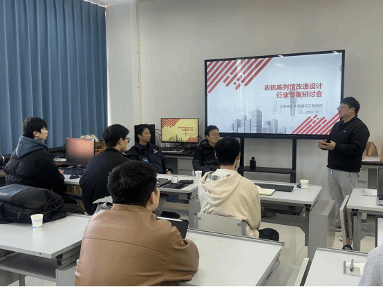 会上,戴翔老师主持开场,介绍工作站运行情况、工作进展及参会人员;郑云瀚老师介绍了《建筑设计Ⅵ》课程结合学校农机陈列馆改造的建筑设计教学实践和学生作品选例;张金高级工程师作遗产低碳化专题报告,并开展实操培训,与师生围绕节能改造、技术应用等展开研讨;最后,白辉副教授总结会议成果,部署下一阶段科研重点。