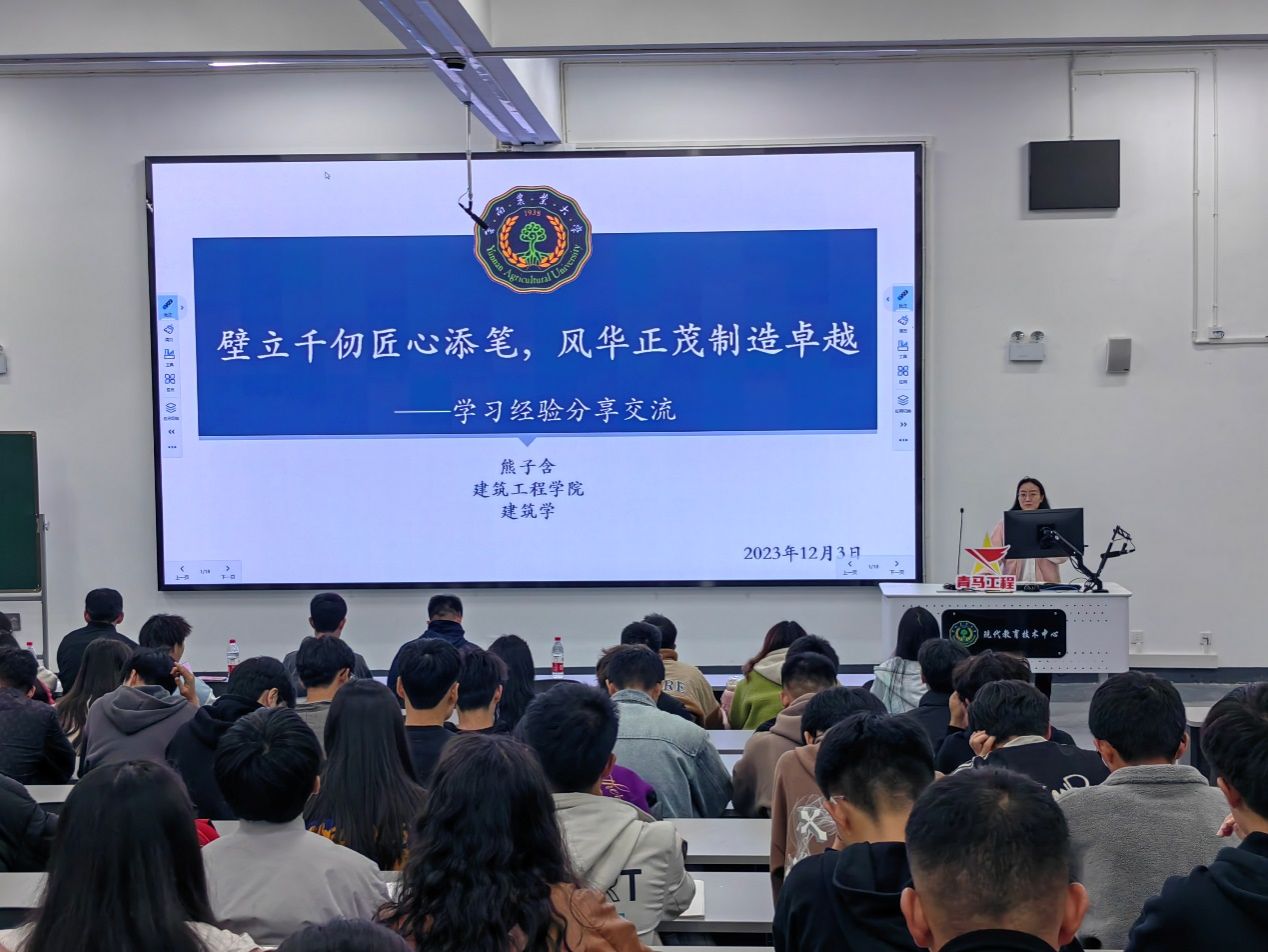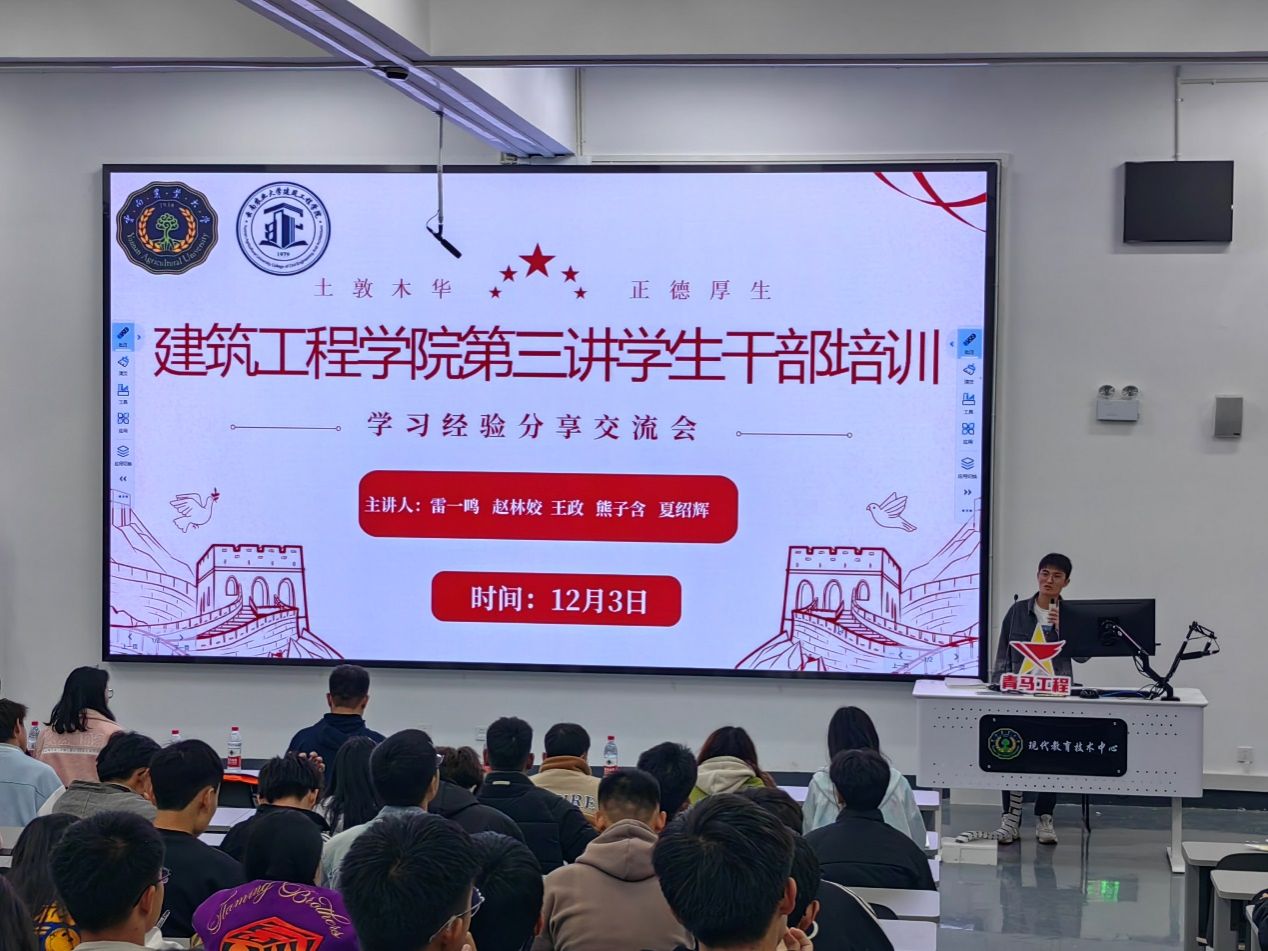 19建筑学熊子含、20工管赵林姣、20土木王政和20给排水夏绍辉四位学长则分别从自身保研的经历出发,为大家分享课业学习、四六级备考、考研、参加各类创新创业与学科竞赛等方面的宝贵经验,引导学生干部们做好自己的学业和职业规划,相信自己,坚持不懈,勇往直前。