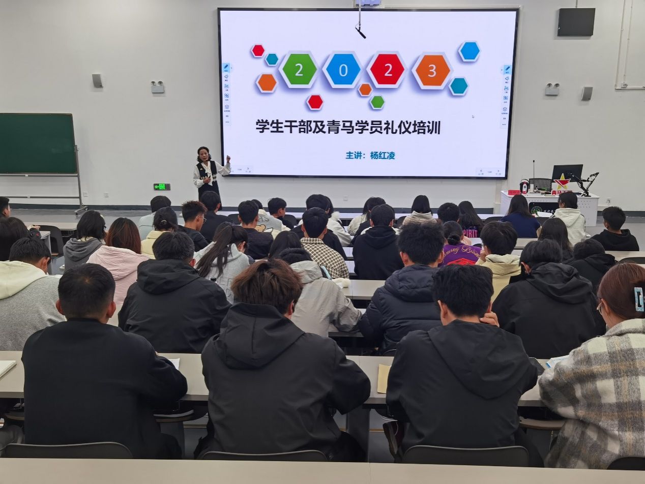 杨红凌老师则为学生干部进行文明礼仪培训,她从礼仪的起源和基本概念、办公礼仪、形象礼仪和接待礼仪四个方面展开讲述。杨老师通过生动的视频与积极的互动,充分调动了同学们的积极性,风趣幽默的言语更是课堂气氛的绝佳调节剂,配合优雅的现场示范,总能让同学们保持强烈的兴趣及高度的注意力,让在场的同学们亲身感受到举止文明的重要性。大家纷纷表示,要从自身做起,从小事做起,从现在做起,自觉遵守文明礼仪规范,使讲文明、懂礼貌、守礼仪在校园内蔚然成风。