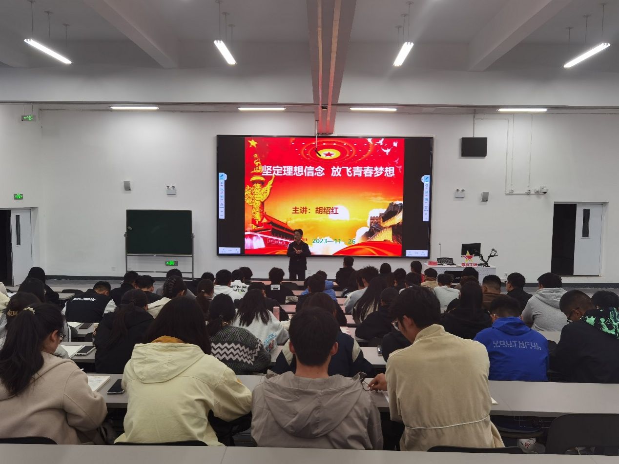 胡绍红老师则以“坚定理想信念,放飞青春梦想”为题,从新时代党和国家对青年尤其是青年大学生的期望说起,讲述了青年个人与国家、民族和社会的关系,实现中华民族伟大复兴的中国梦与青年大学生的使命与担当的关系。要求新时代青年要有品德信念、真才实学;要志存高远、知行合一,才能堪当民族复兴的大任。
