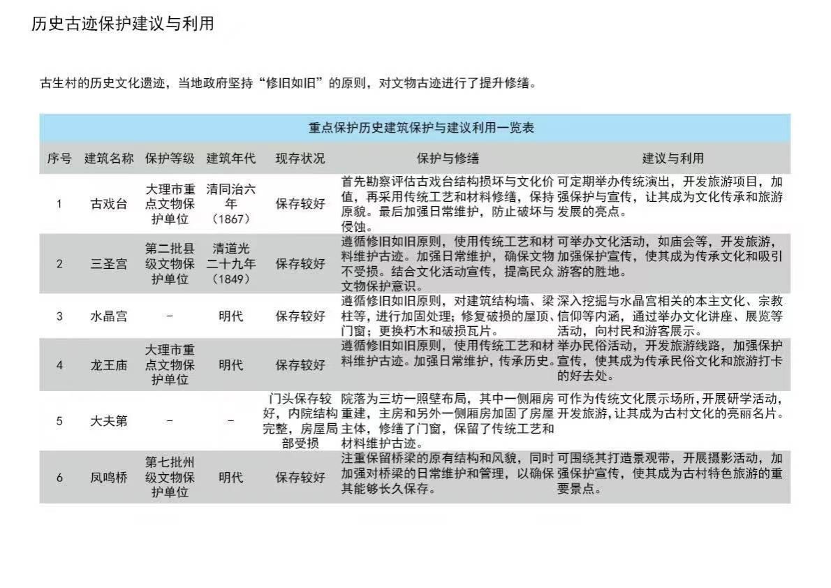 调查发现,部分民众可能因为对古建筑历史价值认知不足,对其保护的紧迫性和重要性缺乏深刻的理解。现有的保护手段更注重建筑的静态保存,而较少考虑到其在动态环境中的实际使用。走访结束后,队员们开展了总结和讨论,一方面对古生村历史遗迹保护情况进行复盘,另一方面对调研发现的问题进行总结并提出解决办法。队员们通过文字概括、思维导图和绘制表格等表现形式,为古生村历史遗迹提出保护建议。