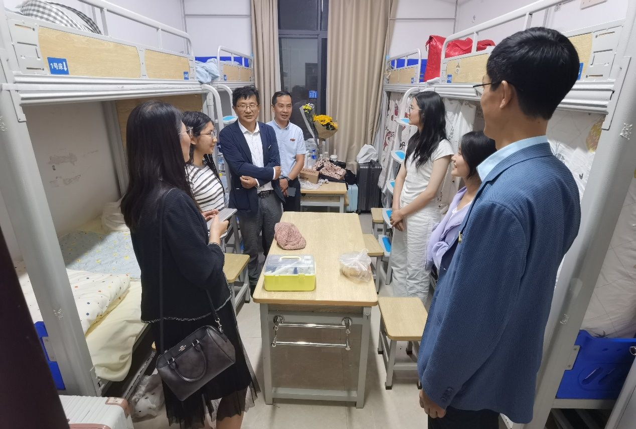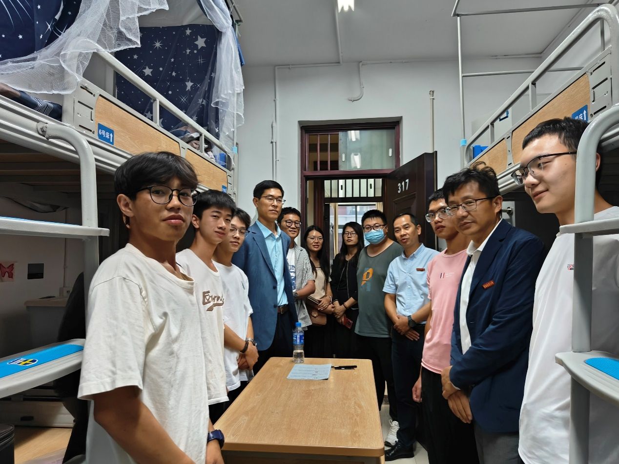 党委书记王国贤和院长王艳伟又带领领导班子及班主任辅导员来到学生宿舍,看望新同学。他们亲切询问同学们的来自哪里、入校感受如何、饮食是否习惯、特长爱好是什么、有没有制定了学习目标和规划等,看到有的新生因为远离家乡离开父母感到情绪低落,老师们耐心安慰鼓励,让同学们再次感受到了来自建工院这个大家庭的温暖。领导和老师们还嘱咐同学们珍惜缘分,包容理解,相互帮助,尽快熟悉校园环境、适应大学学习生活节奏,自觉遵守校纪校规,遇到困难主动寻求老师和七彩直播