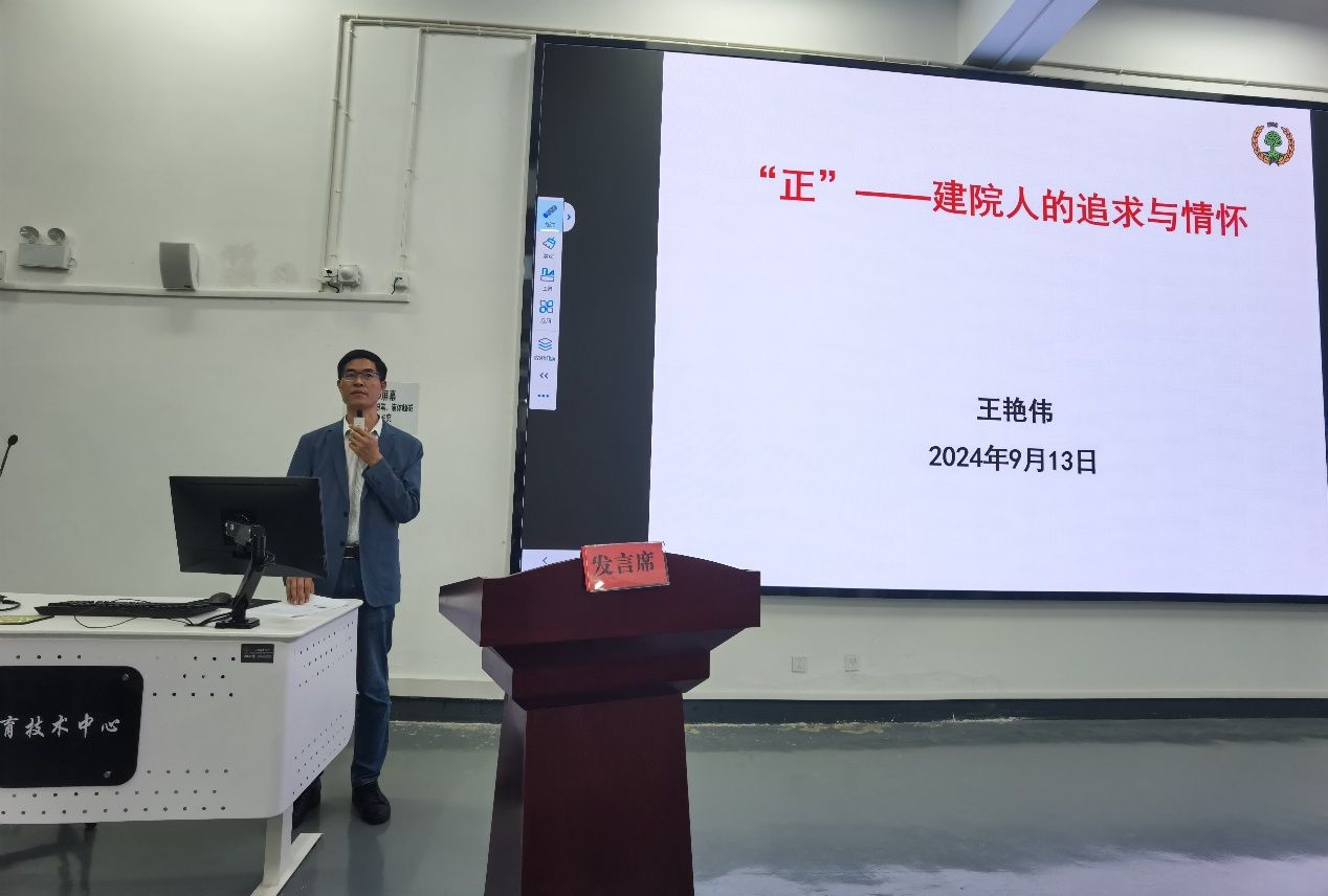 院长王艳伟教授为同学们讲授开学第一课,他以“正——建院人的追求与情怀”为题,从办学历史、特色优势、目标愿景等方面讲述了七彩直播