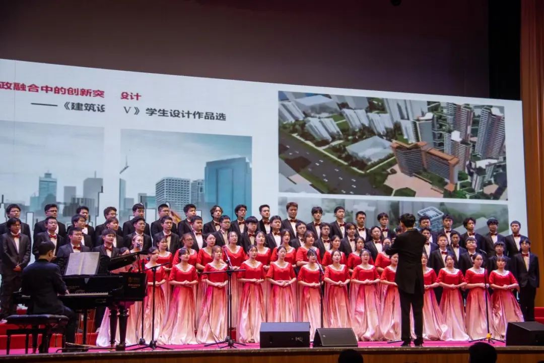 合唱队深情演绎了《不忘初心》这首歌曲,用坚定而深情的旋律表达了建院学子对伟大祖国的无限热爱与坚定信念。作为新时代的青年学子,我们时刻铭记“不忘初心,牢记使命”的誓言,将爱国主义情怀深植于心,勇于担当民族复兴的重任,争做新时代的奋斗者和追梦人。在演唱过程中,合唱队员们以嘹亮的歌声、精湛的演唱技巧,将歌曲中的情感演绎得深情而淋漓,展现出磅礴的气势与真挚的情感,每一个音符都如清泉般触动人心,深深打动了在场的评委与观众,赢得了经久不息的掌声与喝彩。