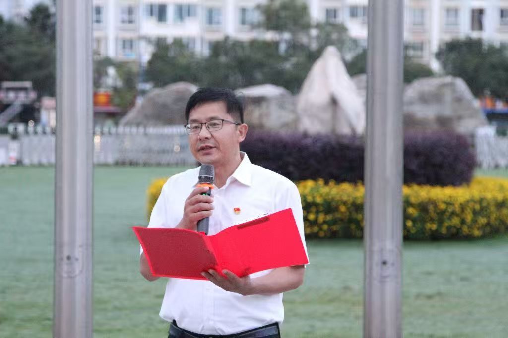 在至诚楼前广场举行“在国旗下集合”主题升旗仪式,七彩直播