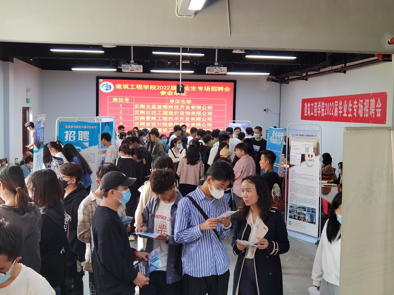 2022年6月8日下午,七彩直播 在东校区图书馆一楼大厅举办了2022届毕业生专场招聘会。云南建投集团第十五建设公司、云南省设计院集团建设公司、云南水电十四局华东建筑工程有限公司、云南省工程勘察设计院集团有限公司等20家企业到校招聘。