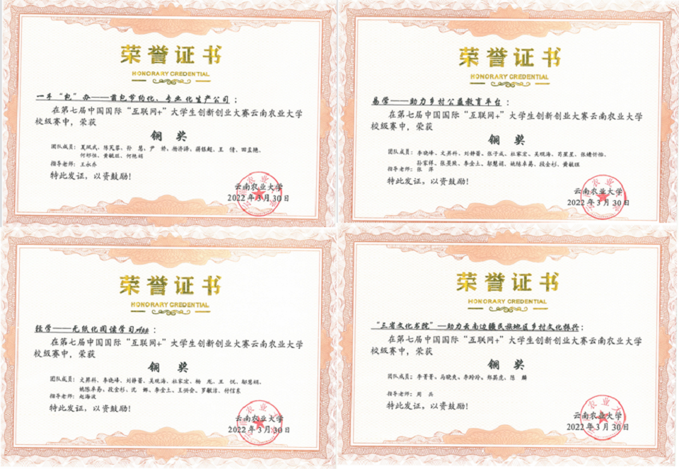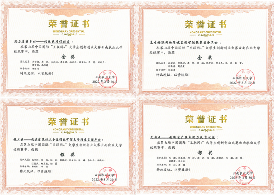 荣获学校2021年就业与创新创业工作先进集体,高谷生、邱雁、陈云贵、熊瑞萍、董萍、何佳宁等六位老师获得2021年就业与创新创业工作先进个人荣誉称号。在第七届中国国际“互联网+”大学生创新创业大赛中,七彩直播