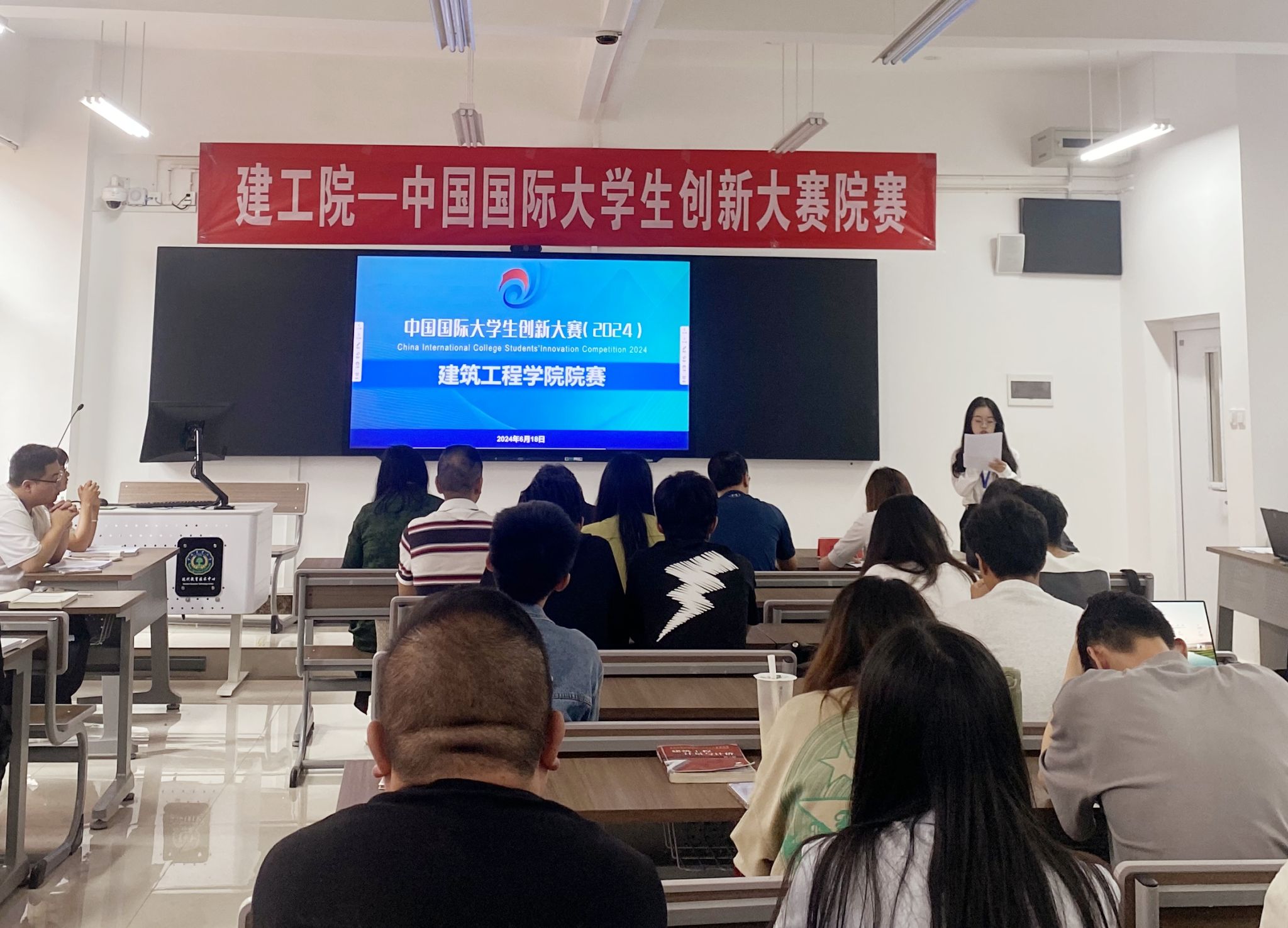在正德楼C303举办中国国际大学生创新大赛院赛,本次比赛邀请了水利七彩直播
