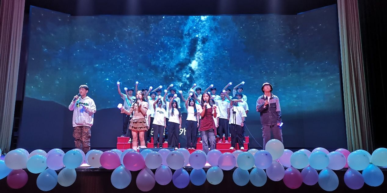 晚会最后,全体教职工合唱院歌《筑梦飞翔》和《我和我的祖国》,将现场气氛推向高潮。舞台上下,国旗与荧光棒汇成一片红色海洋,实现了“个体情感”向“家国情怀”的升华。